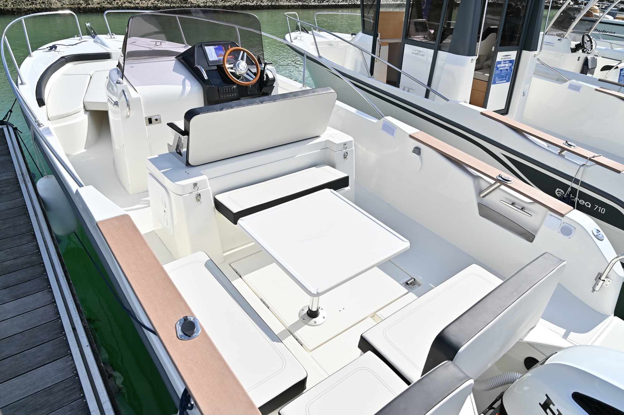 Conçu avec la même carène que l'Ostrea 710 qui séduit par ses qualités marines, avec un pont très différent puisque la pilotine disparait au profit d'une console centrale reculée pour dégager de l’espace pour un grand bain de soleil à l’avant.